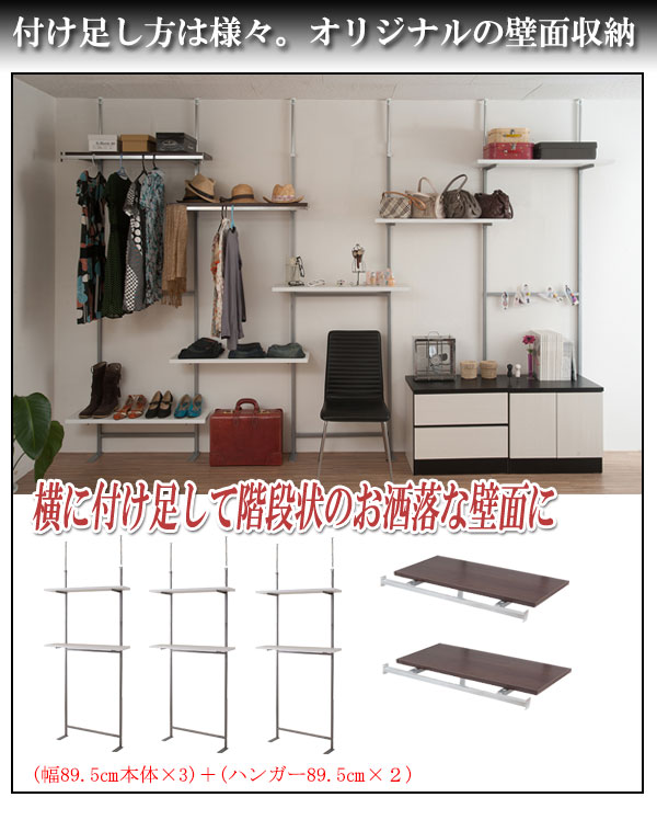 突っ張り壁面収納 無段階調整オープンラック 幅59.5cm用別売りハンガー棚 ホワイト色 ナチュラル色 ブラウン色についてつぶやく