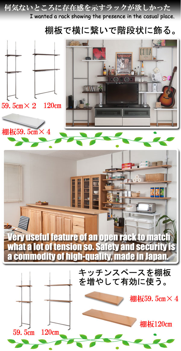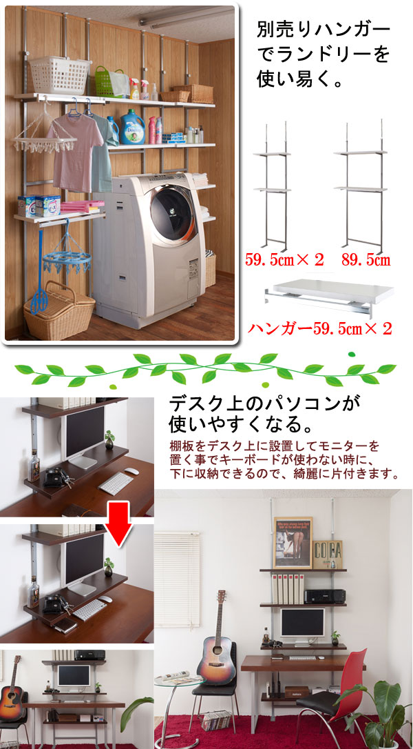 ■商品について/無段階に棚板の位置を調節できる突っ張りウォールシェルフが新たに登場!