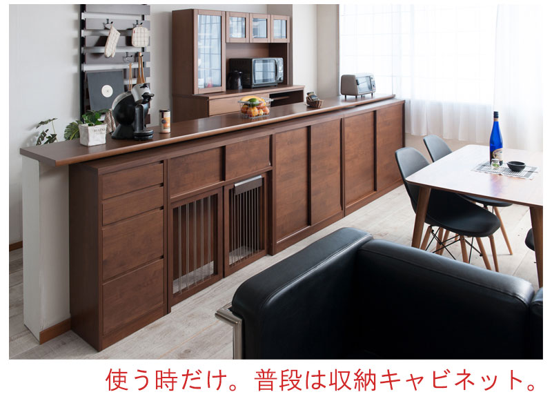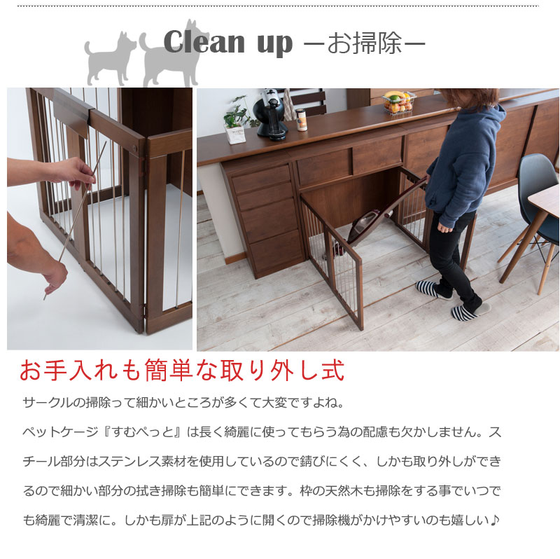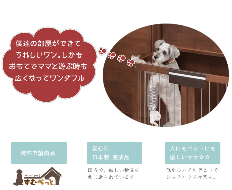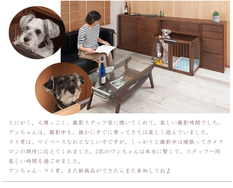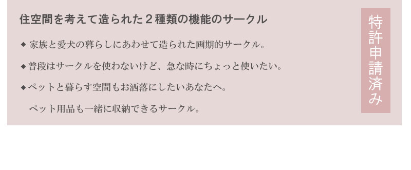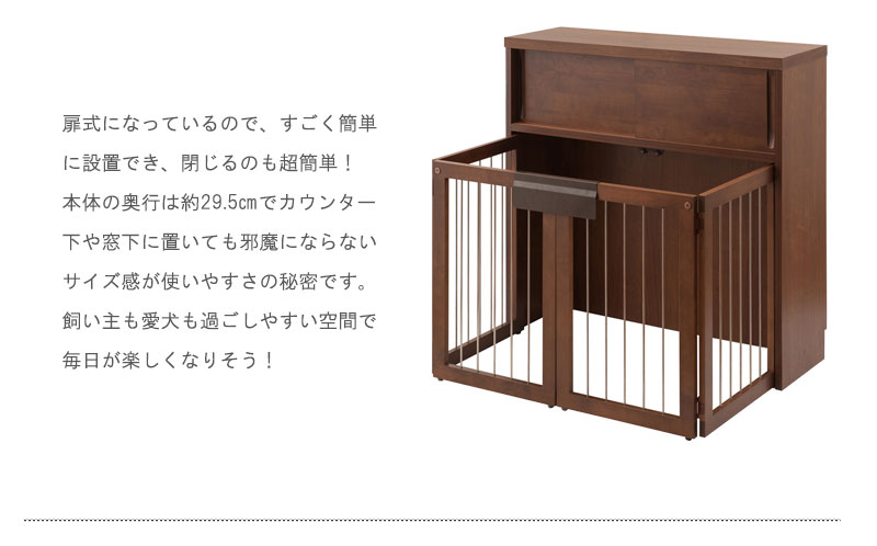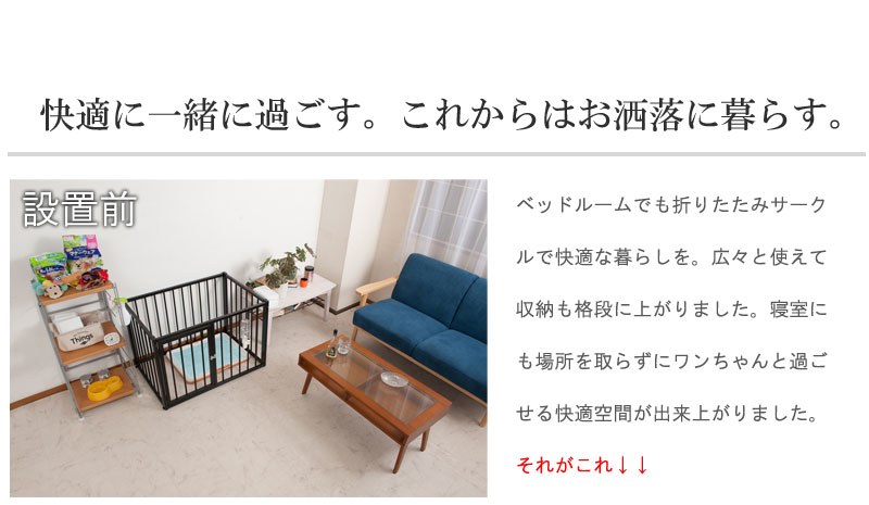 愛犬をサークルに入れるときだけ広げるので、普段は収納キャビネットのように使えるのが魅力。
