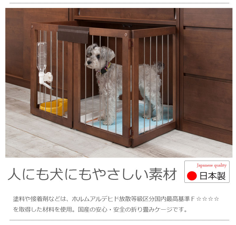 木製ワンタッチでたたんでしまえる収納型ケージ。