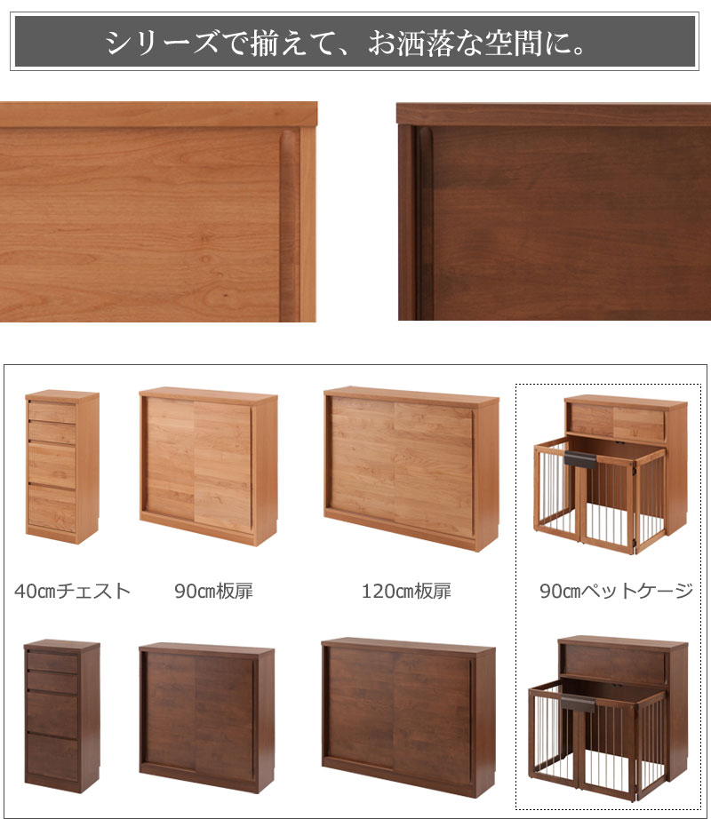 ■商品の仕様/引戸 ケージ:天然木アルダー材(ウレタン樹脂塗装)、天板 本体:強化プリント紙化粧繊維板