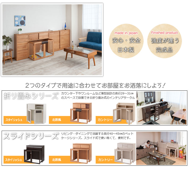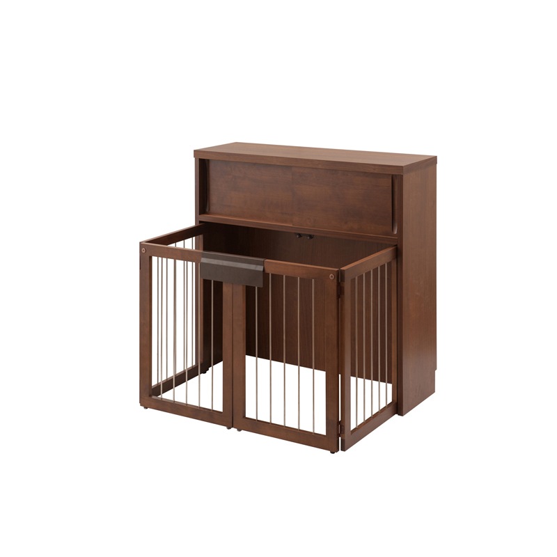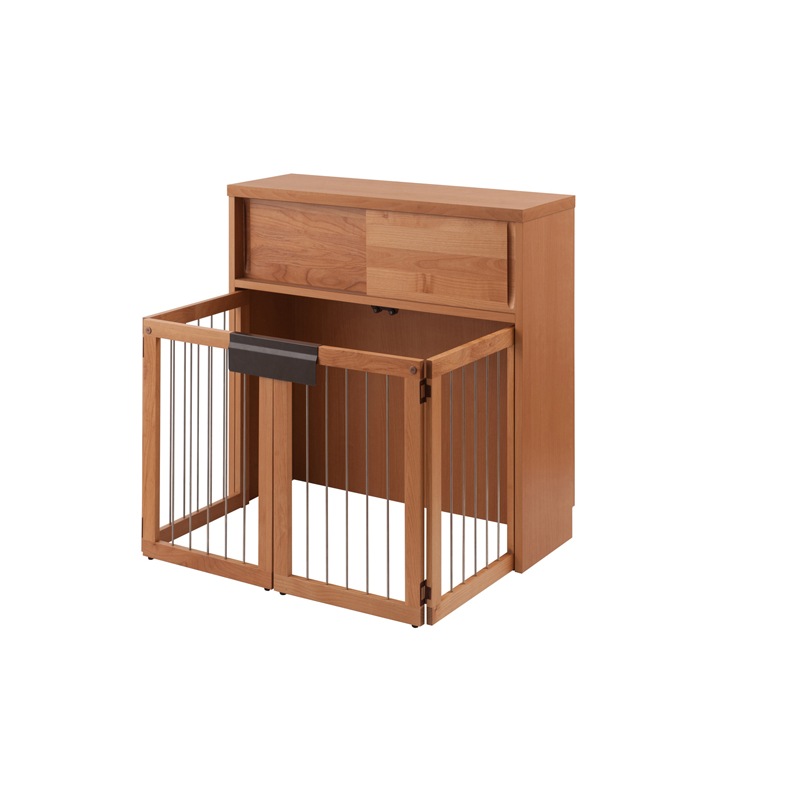 【Alder】木目の美しい北欧風天然木アルダー材の収納付き折りたたみ型ケージ 幅90