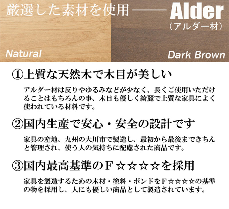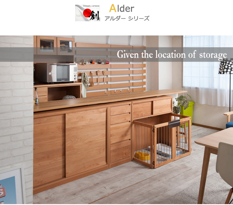 - ■商品について/スッキリとしたデザインの扉や前板は木目の綺麗なアルダー材を使用。