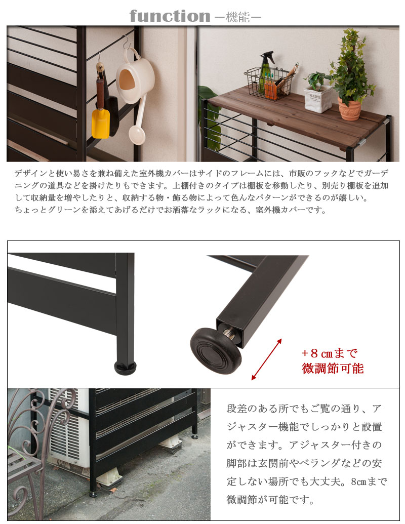■室外機収納部内寸/(約)幅84.5×奥行38.5×高さ81(アジャスター使用時89)cm