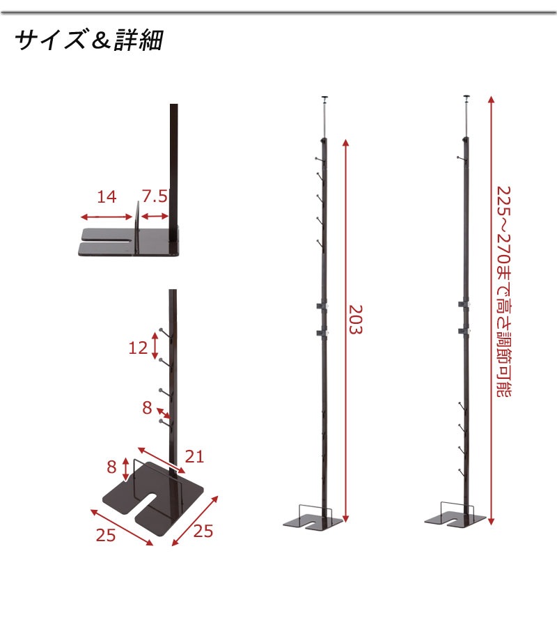 ■商品サイズ/(約)幅25×奥行25×高さ225~270cm