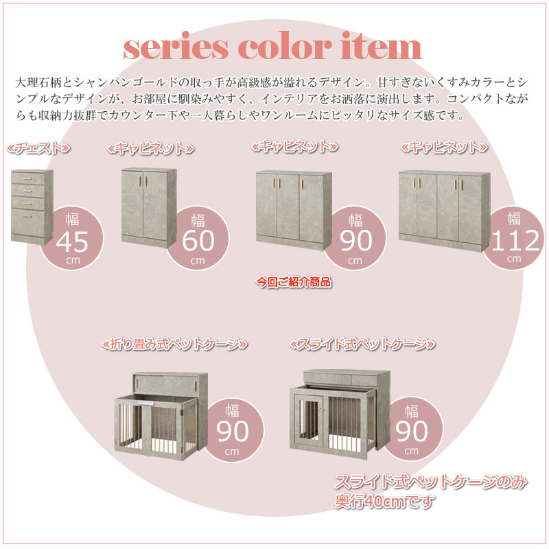 【JOLI】優雅な大理石調カウンター下キャビネットシリーズ 幅90cm 扉タイプ 奥行30cm キャビネット