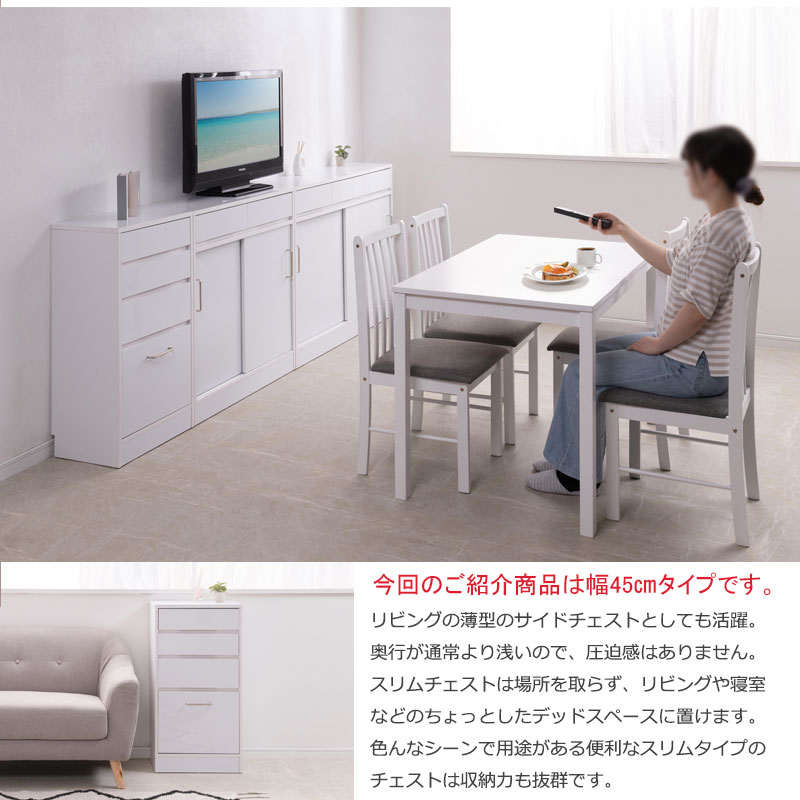 【SIRO LV】 スリムチェスト 幅45cm 4段 ハイグロスホワイト