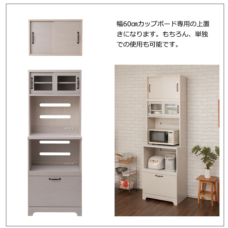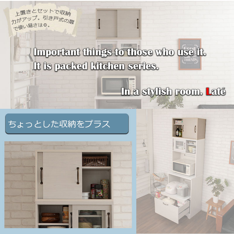 【Late】ラテシリーズ キッチンボード用上置き60幅 ホワイト木目色