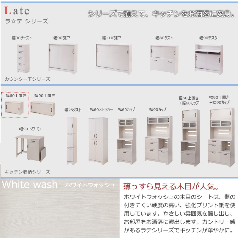 【Late】ラテシリーズ キッチンボード用上置き60幅 ホワイト木目色についてつぶやく